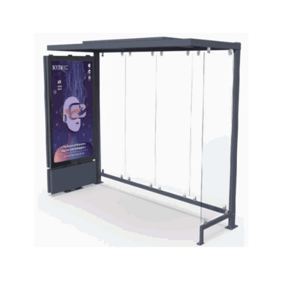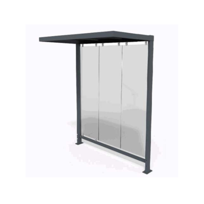 Paredes laterales en vidrio laminado y tejado con cubierta en policarbonato alveolar.