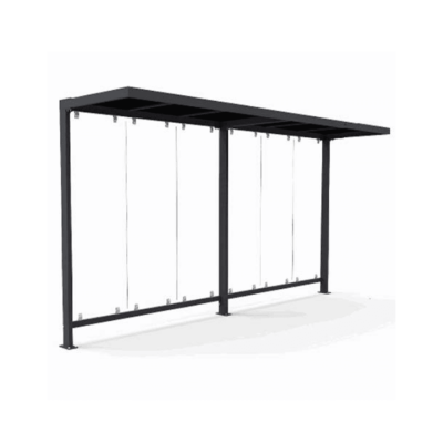 Estructura en acero laminado en caliente y galvanizado que garantiza una perfecta resistencia a la corrosión. Acabado con pintura electroestática poliéster a 220 ° en color gris forja con micropartículas metálicas.
