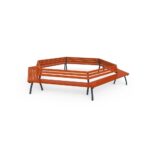 Asiento con taburetes de140x36mm en madera tropical color cerezo, tratada y barnizada.