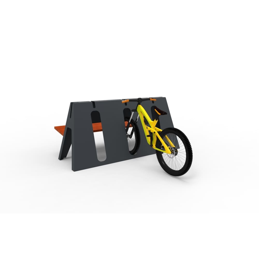 En chapa de acero de carbono de 4mm de espesor, decapado, con tratamiento primario a base de zinc C5 y acabado lacado a RAL gris forja a temperatura de 230°C.