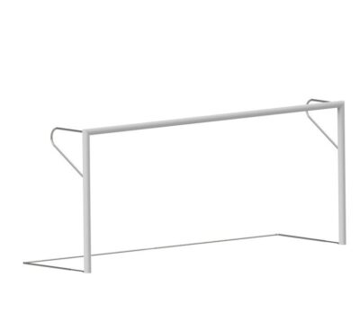 Juego de dos porterías de fútbol 5 fijas para anclar al pavimento mediante botes instalados en dados de hormigón. Reforzadas y compactas, fabricadas en perfil de aluminio de 120 x 100mm para entrenamientos, partidos y competiciones.
