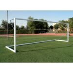 Juego de Porterías fútbol 11 fijas aluminio reglamentarias de gran calidad y resistencia, fijadas con botes para anclar al suelo/ pavimento mediante hormigón.