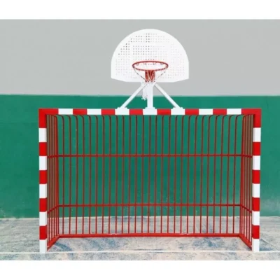 Juego de 2 porterías de fútbol sala antivandálias con tablero de minibasket antivandálico
