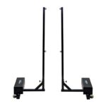 Juego de postes bádminton trasladables de aluminio con ruedas y contrapesos incluidos, con los que sujetar y mantener tensa la red en entrenamientos y partidos.