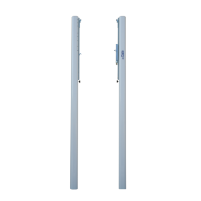- El poste dispone de refuerzo interior, carro regulador para alturas reglamentarias y husillo de tensado de red.