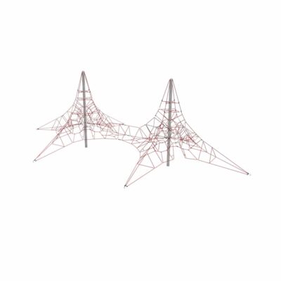 Descripción: Juego de Escalada Pirámide Tridimensional (AQL – 0.62m), compuesta por 1 tubo acero galvanizado y lacado, red roja para trepar en forma de pirámide fabricada en cuerda reforzada en acero revestido por fibras de poliproplieno Ø18mm,