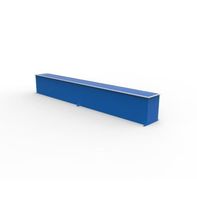Descripción: Compuesto por estructura en chapa de acero galvanizado, superficie deslizante y laterales en chapa de acero carbono decapado con tratamiento primario a base de zinc C5 y acabado lacado a RAL 5010 Azul Genciana a una temperatura de 230°C.