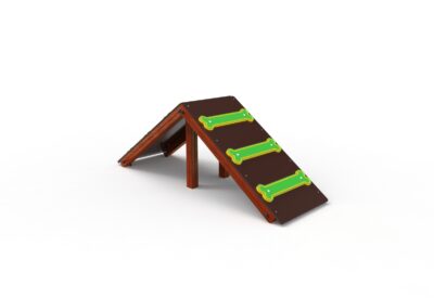 Equipamiento BragSPORT, RAMPA CANINA. Compuesto por postes de madera de 90x90mm y rampas en contrachapado marino con paneles en bragpo en forma de hueso. Herrajes de acero