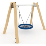 Columpio Robinia (HIC – 1.25m). Compuesto por 1 pórtico simple, barra horizontal de Ø80mm en acero galvanizado, sistema de giro en acero Inox con rodamientos, 4 postes de