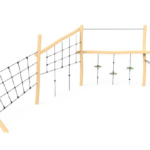 Robinia Park “TRONCOS EQUILIBRIO Y CUERDA” (HIC – 0.35m). Compuesto por 9 postes de madera Robinia (Ø140-180mm) y cuerda reforzada de acero revestido por fibras de