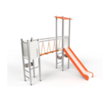 Combinado “RAW4” (HIC – 1.20m). Equipamiento modular patentado compuesto por postes de acero Inox, plataformas, paneles y tejado en HDPE.