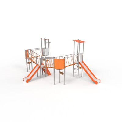 Combinado “RAW8” (HIC – 1.20m). Equipamiento modular patentado compuesto por postes de acero Inox, plataformas, paneles y tejado en HDPE.