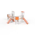 Combinado “RAW9” (HIC – 1.20m), equipamento modular patenteado. Compuesto por postes de acero Inox, plataformas, paneles y tejado en HDPE.