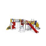 – 1 red vertical de escalada (ACL – 1,30 m) en red fabricada con cuerdas reforzadas de acero recubierto por fibras de polipropileno de Ø16mm y pasamanos de acero inoxidable de Ø50mm.