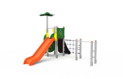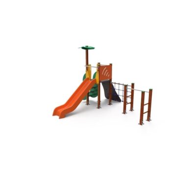 – 1 tobogán (ACL – 1,30 m) en HDPE rotomoldeado con panel de resguardo en HDPE;