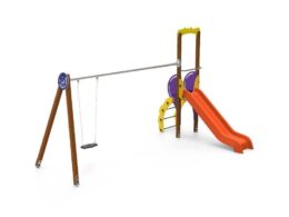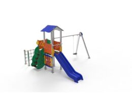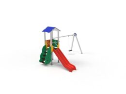 – 1 Tobogán (HIC – 1.30m) en HDPE rotomoldeado y panel de protección en HDPE;