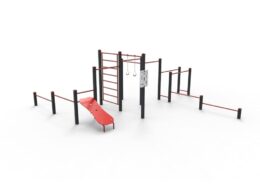 Descripción: compuesto por 2 postes metálicos de 90x90mm en acero galvanizado y tubo Ø40mm en acero inoxidable 304.