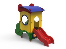 – 1 tobogán (ACL – 0.60m) en HDPE rotomoldeado con panel de resguardo en HDPE;