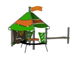 – 1 torre con tejado arqueado (ACL – 0.60m), postes en aluminio de 90x90mm y plataforma con estructura galvanizada revestida de HDPE negro;
