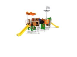Descripción: vagón (ACL – 0.50m), compuesto por tubos Ø40mm de acero inoxidable 304, estructura inferior en madera contrachapada marina y 2 bancos en HDPE negro. Techo arqueado, paredes y paneles decorativos en HDPE.